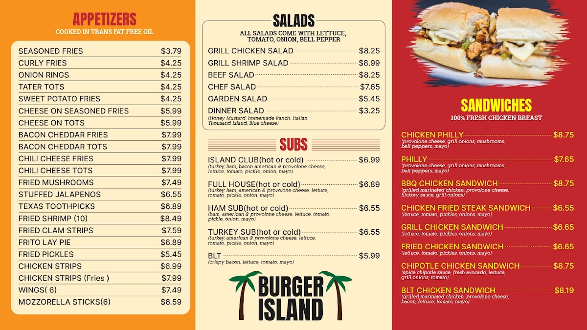 Burger Island’s menu also features delicious sides, from crispy onion rings to grilled cheese, ensuring there's something for everyone. The inviting atmosphere and friendly service contribute to an overall delightful dining experience. Whether you're dropping by for a quick lunch special or a hearty dinner, Burger Island is sure to become your go-to spot. Come hungry, and leave with a full heart and an even fuller stomach!